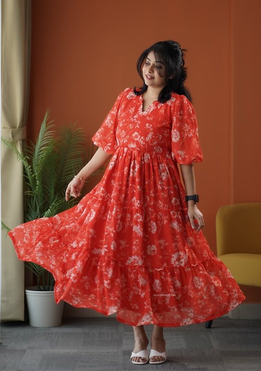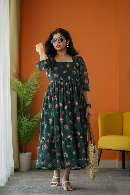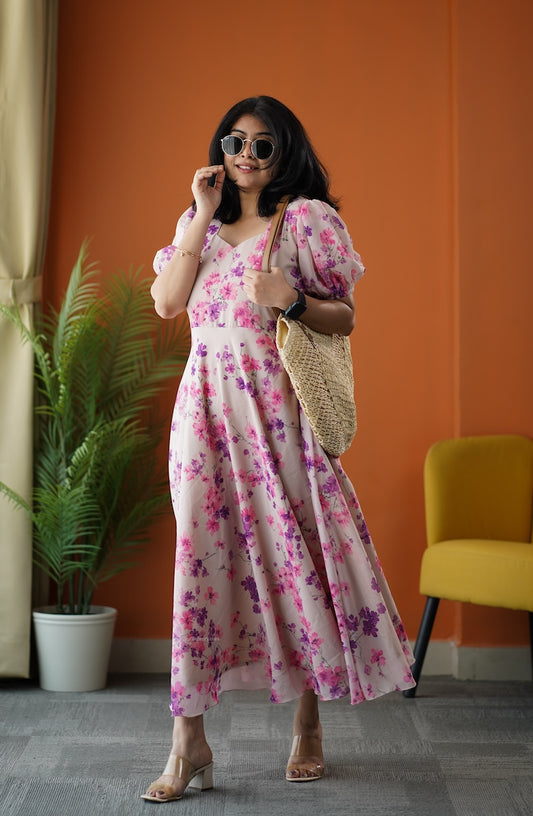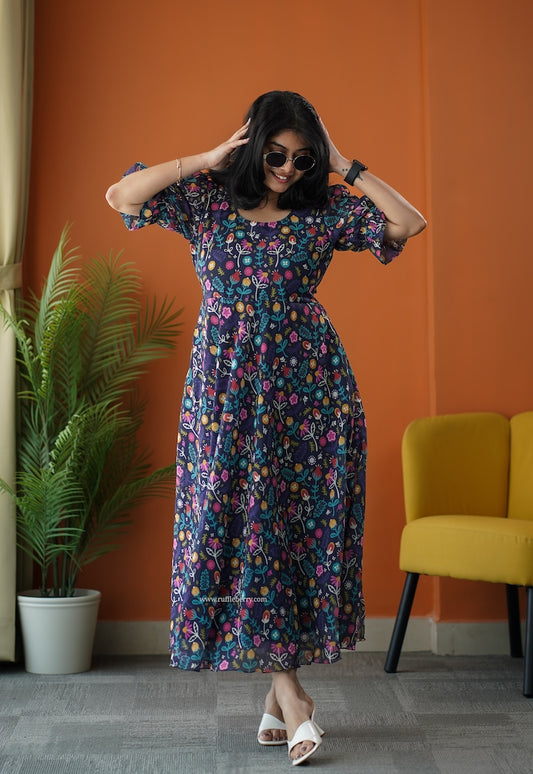 Sunburst Multifloral Georgette Fit & Flare Dress