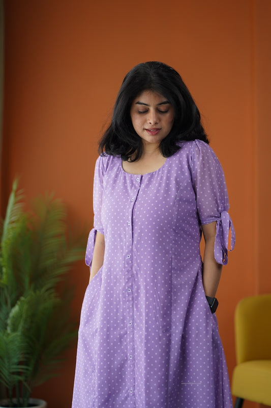 - Sleeves : Elbow length puff Sleeves with Tie-ups
