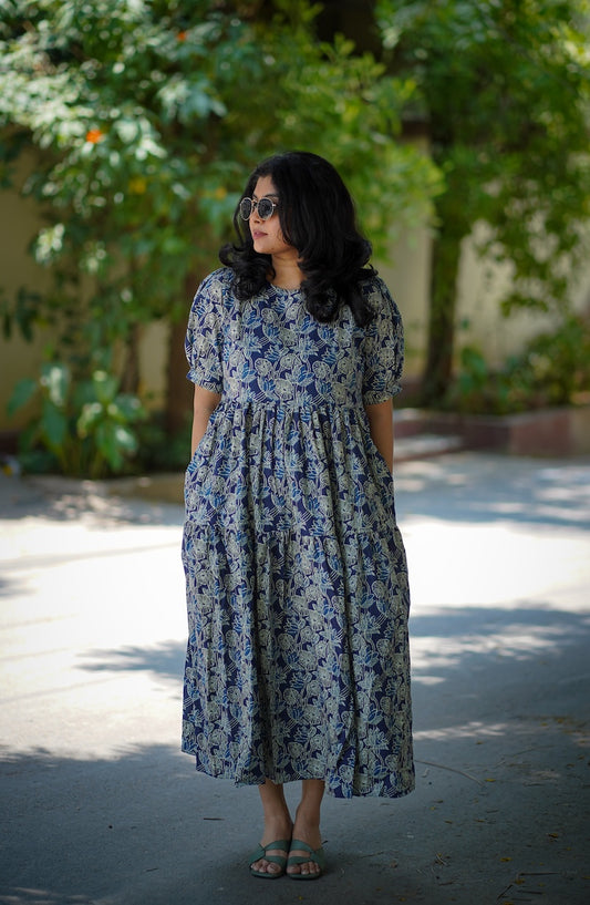 Chelsea Indigo Cotton Tier Dress