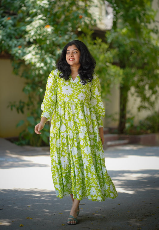 Chelsea Lime Green Cotton Tier Dress