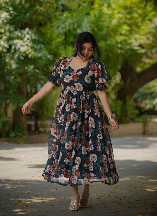 Bloom Roses Georgette Dress