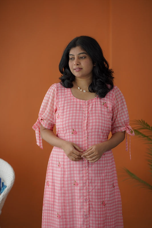 Sol Pink Gingham A-line Dress
