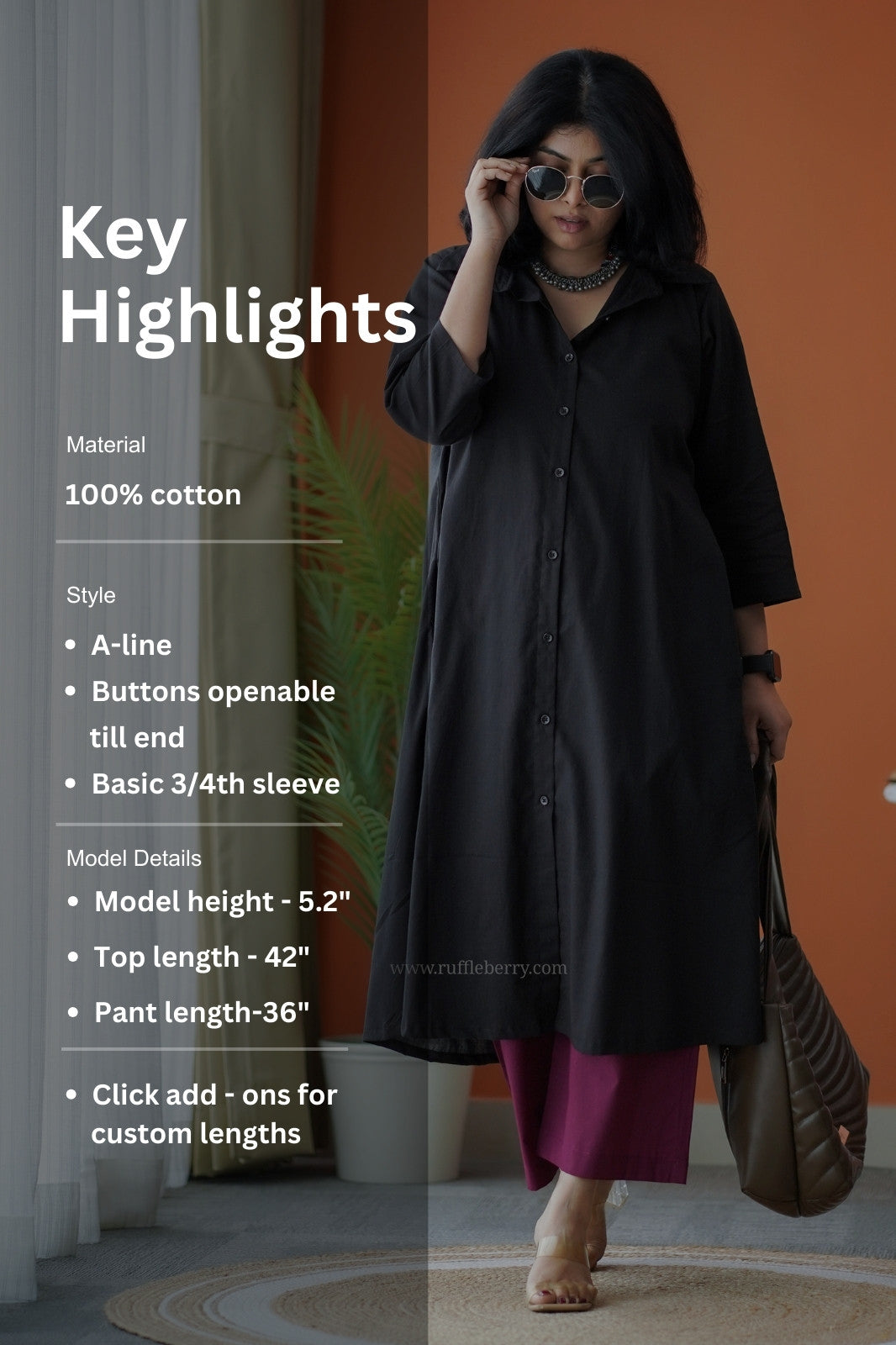 - Sleeves: 3/4th Length Sleeves