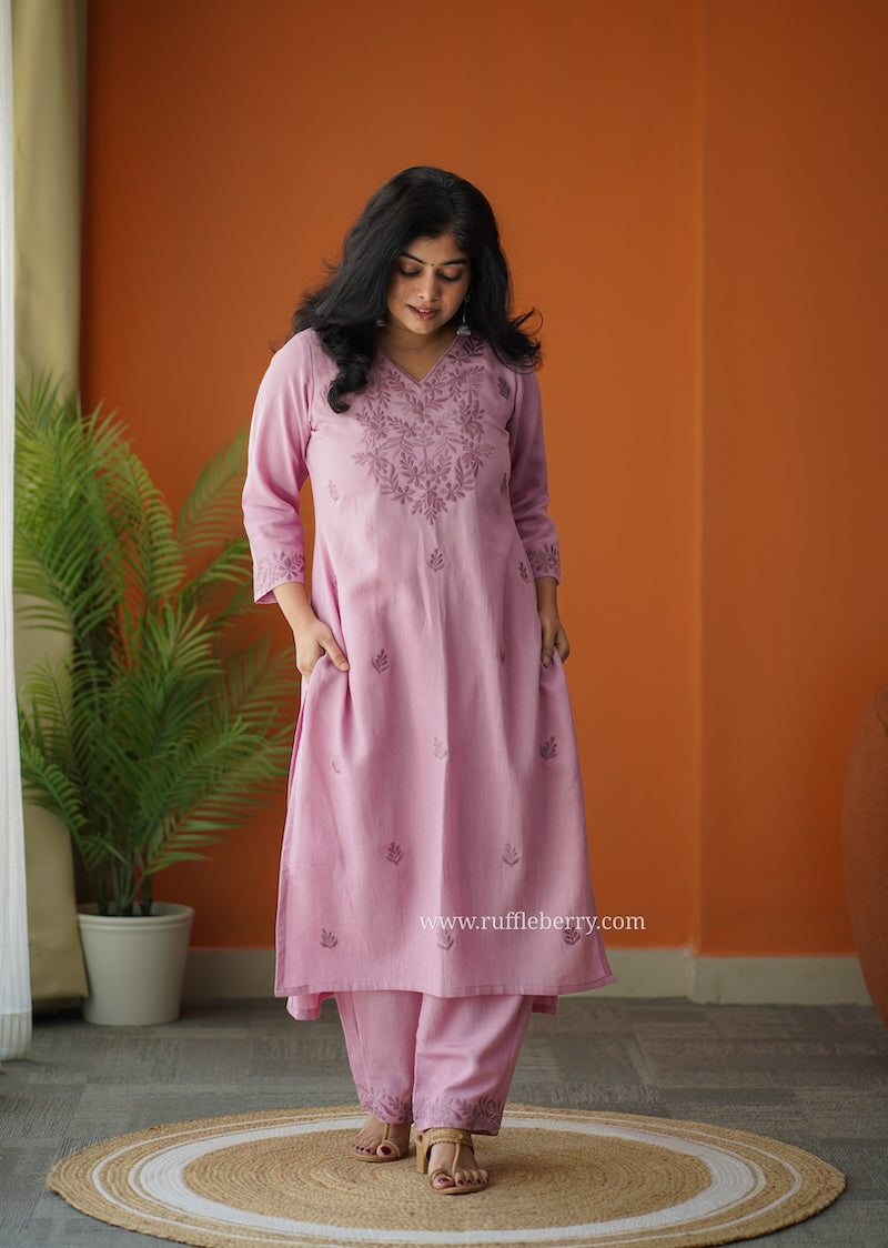 Rosy Petals Embroidered Cotton Co-ord set